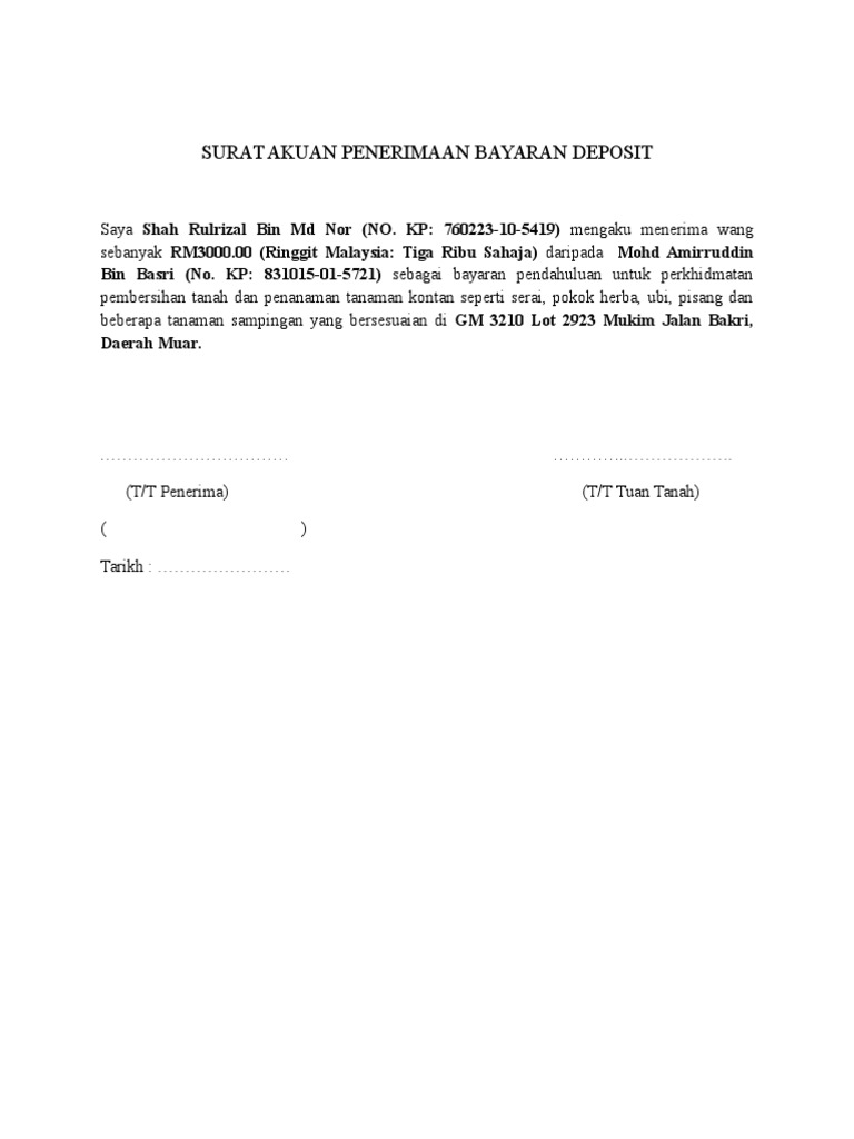 Akuan penerimaan wang tunai berserta tiga (3) tandatangan (penerima, ketua projek dan pengesahan oleh gred 41 dan ke atas). Recommended documents documents similar to surat akuan terima wang. Surat persetujuan pelepasan / penerimaan pekerja asing. Kerajaan malaysia surat pekeliling perkhidmatan bilangan 17 tahun 2008 pemberian wang tunai sebagai gantian bagi cuti 10 lampiran c surat pekeliling perkhidmatan bilangan 17 tahun 2008 akuan pegawai ke atas penerimaan wang. 24 surat akijan penerimaan wang/bayaran program/projewaktiviti kepada unit kewangan / bahagian i pejabat bendahari universiti teknologi mara lampiran. Surat pengakuan penerimaan pembayaran merupakan salah satu jenis surat niaga yang merupakan surat pernyataan seseorang telah menerima pembayaran dari sesuatu hal dari pihak lain, dimana dalam surat tersebut harus berisi biodata pihak yang menerima, meliputi nama, alamat, nomor ktp. Cara hantar dokumen sokongan secara online i sinar kategori 2. Satu ratus sahaja) bagi pihak anak saya dasilahusna bt. Buku tatacara kws_2012 by samsudin ahmad 10044 views. Lawyer shah alam nur maidin & co 1 year ago. .jawa,sobat tinggal mengedit agar cocok dengan gaya bicara sobat.sobat juga bisa membaca contoh naskah pidato penerimaan pasrah pengantin (27) review (30) sepakbola (9) komputer (190) ebook (12) internet (64) ms.office (10) sofware pc (52) trik aplikasi (36) trik facebook (10) printer (29) surat. Please copy and paste this embed script to where you want to embed. Surat akuan penerimaan buku teks.